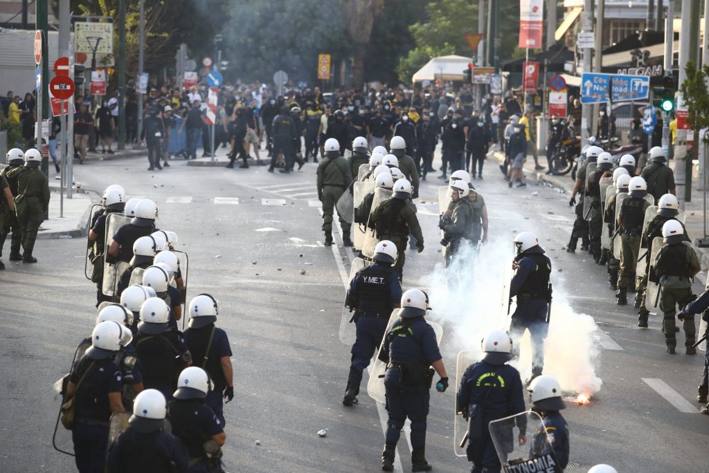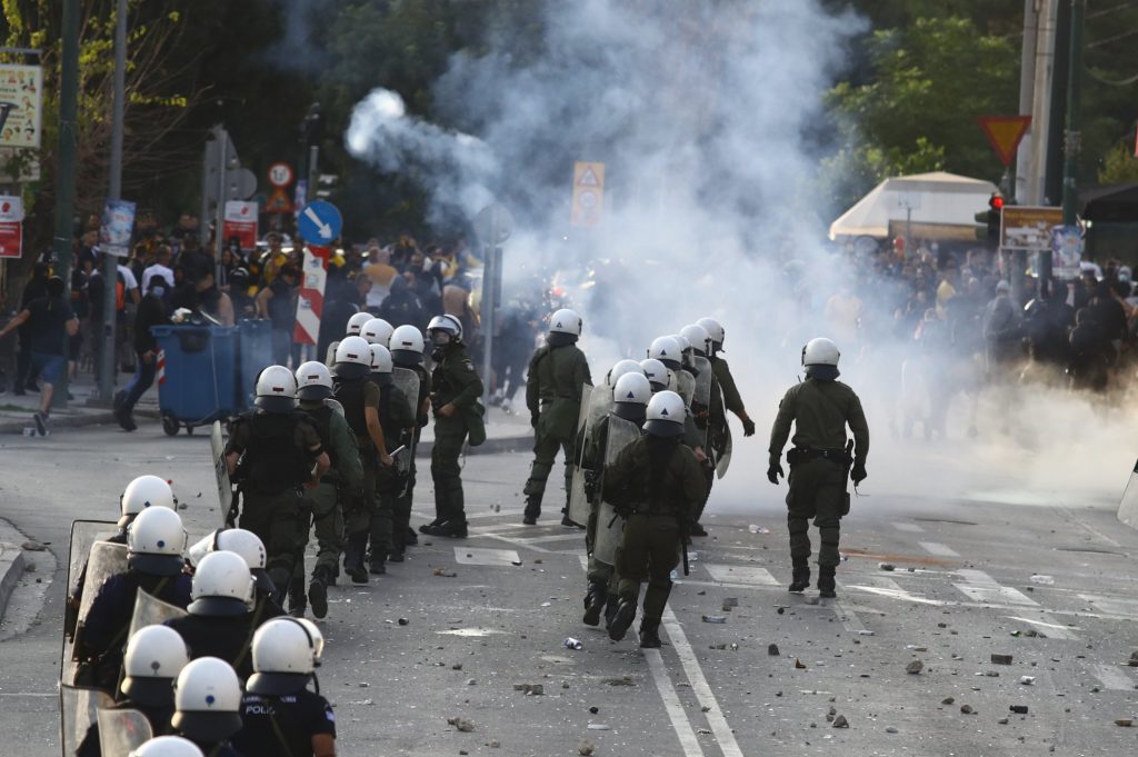 Από τους πυκνούς καπνούς των κρότου λάμψης και των δακρυγόνων που έριξαν οι αστυνομικές δυνάμεις πλημμύρισε η περιοχή γύρω από το γήπεδο της ΑΕΚ στη Νέα Φιλαδέλφεια, δύο ώρες πριν από τον ποδοσφαιρικό αγώνα με τον Άγιαξ στον όμιλο του Europa League.