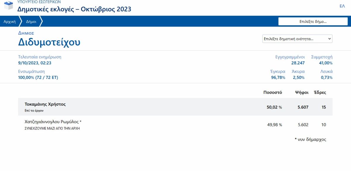 Σε θρίλερ εξελίχθηκε η εκλογική διαδικασία στον δήμο Διδυμοτείχου στο πλαίσιο των αυτοδιοικητικών εκλογών.