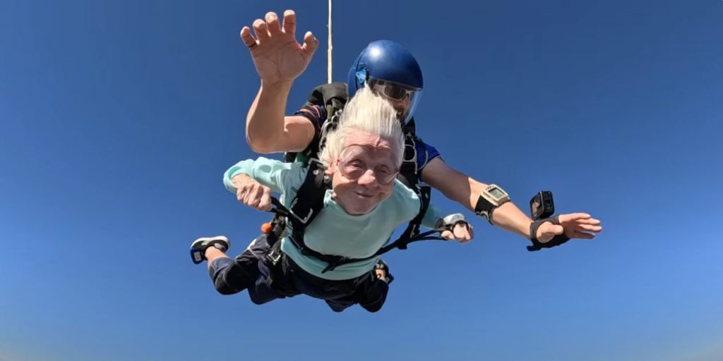 Η πτώση της από ύψος 4.100 μέτρων στο Skydive Chicago στην Οτάβα του Ιλινόις θα μπορούσε να την κατατάξει στο βιβλίο των Ρεκόρ Γκίνες ως τη γηραιότερη αλεξιπτωτίστρια στον κόσμο. Το σημερινό ρεκόρ καταρρίφθηκε τον Μάιο του 2022 από την 103χρονη Linnéa Ingegärd Larsson από τη Σουηδία.