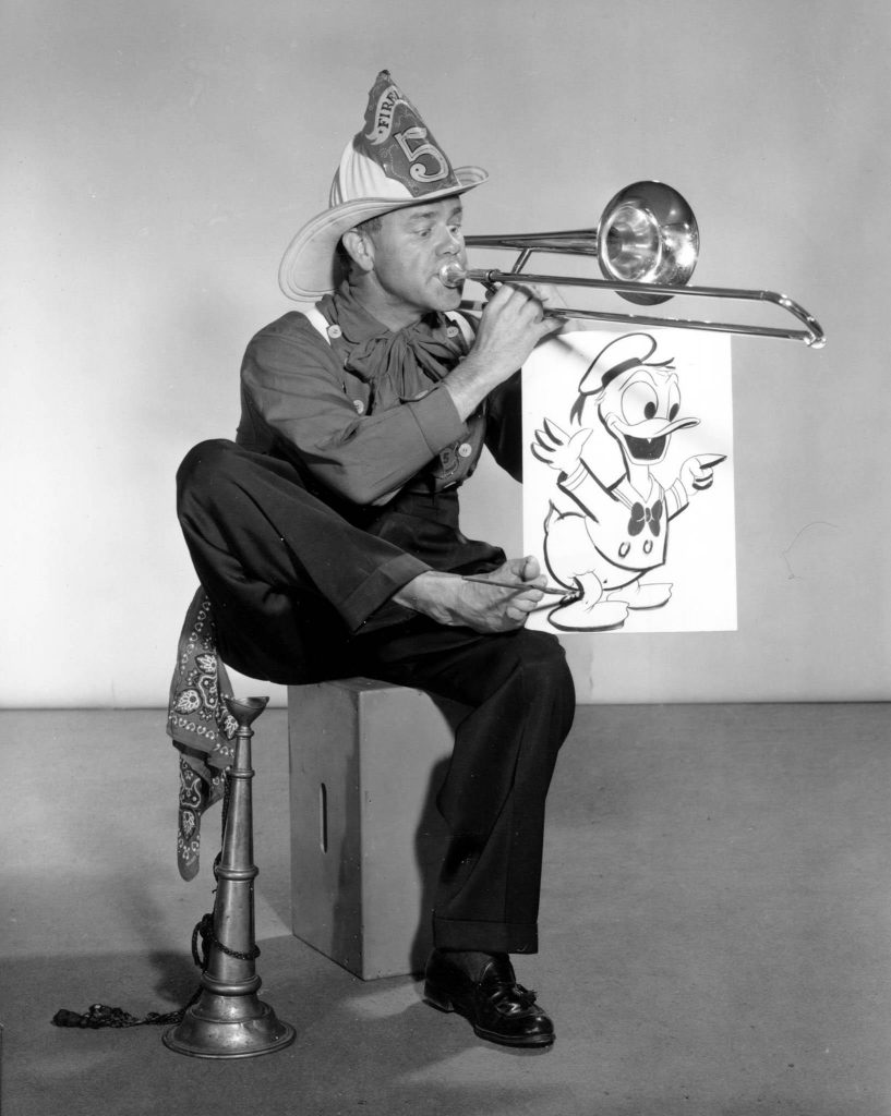 Φωτογραφία που τραβήχτηκε το 1958 με τον animator Ward Kimball και το σχέδιο ενός από τους χαρακτήρες του. Ο Ward ήταν ο πιο εκκεντρικός από τους Nine Old Men, τη βασική ομάδα δημιουργών της Disney.