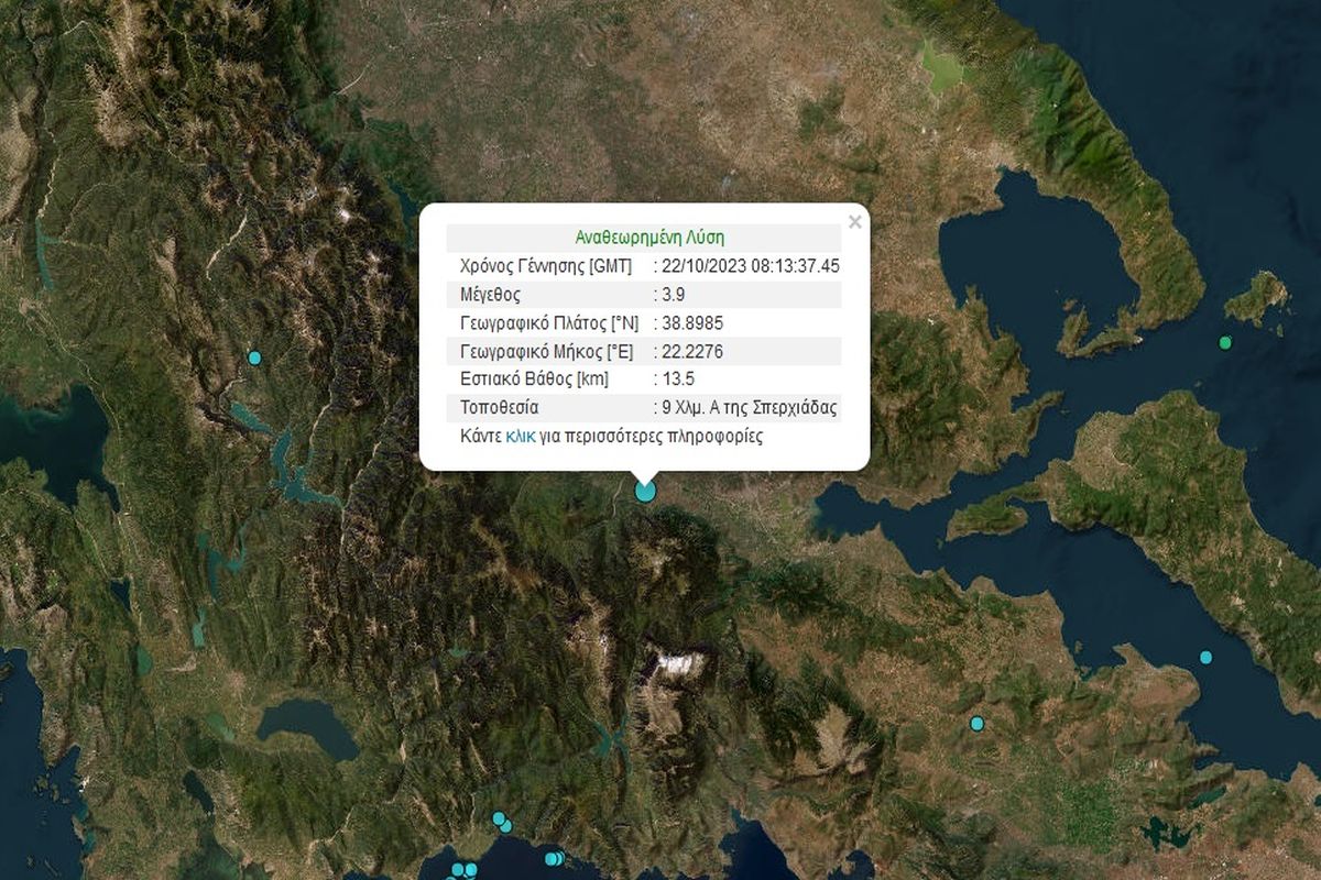 Σεισμός 3,9 Ρίχτερ σημειώθηκε πριν από λίγο στη Φθιώτιδα. Σύμφωνα με την καταγραφή του Γεωδυναμικού Ινστιτούτου ο σεισμός έγινε 9 χιλιόμετρα ανατολικά της Σπερχειάδας και είχε εστιακό βάθος στα 13,5 χιλιόμετρα.