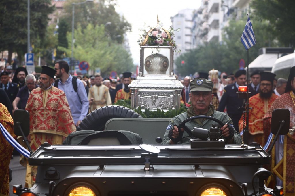 Σε κλίμα θρησκευτικής κατάνυξης πραγματοποιήθηκε η λιτανεία και η περιφορά της εικόνας της Παναγίας «Κορωνιωτίσσης», των λειψάνων και της εικόνας του Πολιούχου Αγίου Δημητρίου, στη Θεσσαλονίκη.