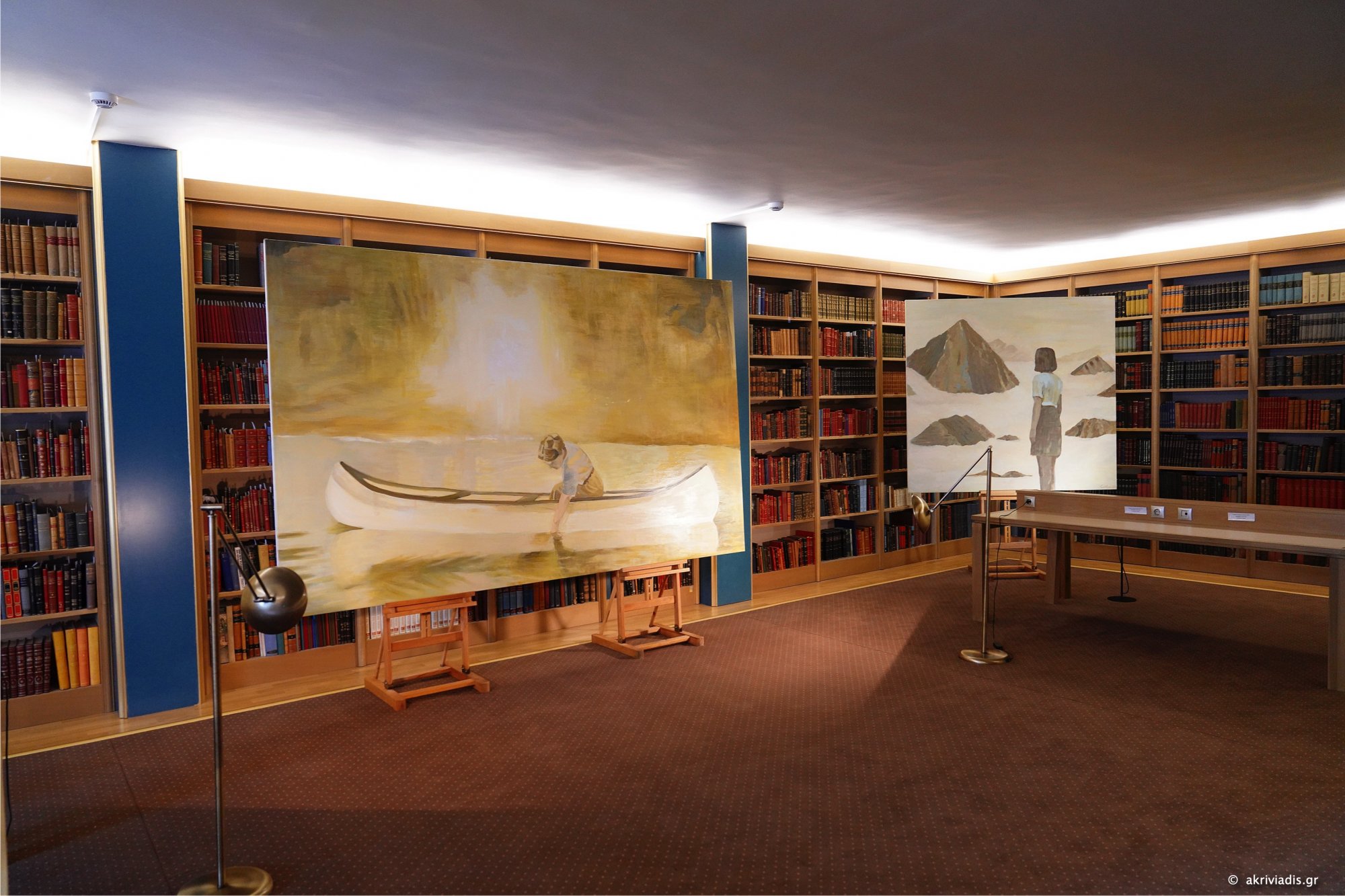 Η έκθεση αποτελείται από έργα ζωγραφικής και σχέδια σε χαρτί, που δημιουργήθηκαν ειδικά για τον χώρο της Βιβλιοθήκης, με αφετηρία φωτογραφίες και κινηματογραφικά ντοκουμέντα από την Κατοχή και το Ολοκαύτωμα.