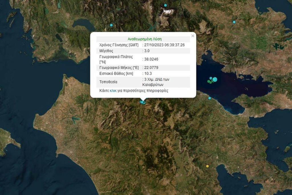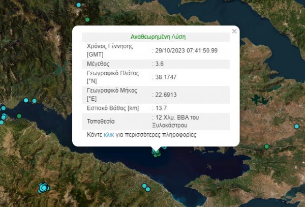 Τρεις σεισμοί με διαφορά λίγων λεπτών στον Κορινθιακό, ανοιχτά του Ξυλόκαστρου, το πρωί της Κυριακής (29/10).