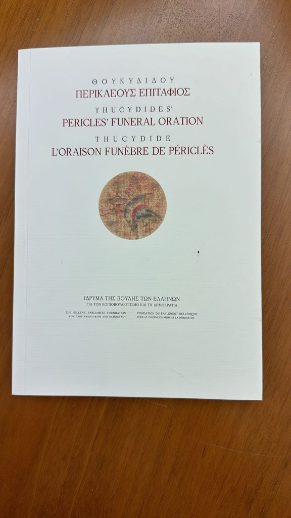 Οι κεντρικοί τραπεζίτες της ευρωζώνης έχουν ήδη στα χέρια τους ένα best seller όλων των εποχών. Τον Επιτάφιο του Περικλέους του Θουκυδίδη και άρχισαν αν το διαβάζουν. Πού το βρήκαν; Το πρόσφερε ο Πρόεδρος της Βουλής Κώστας Τασούλας στους διοικητές των κεντρικών τραπεζών και το μοίρασε ο Γιάννης Στουρνάρας κατά τη διάρκεια της συνεδρίασης του Διοικητικού Συμβουλίου της ΕΚΤ.