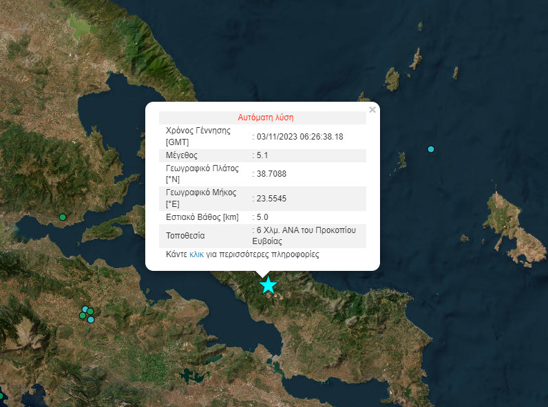 Σημειώνεται πως σύμφωνα με την αναθεωρημένη λύση του Γεωδυναμικού Ινστιτούτου, ο σεισμός είχε ένταση 5,1 βαθμών της κλίμακας Ρίχτερ, ενώ το επίκεντρο εντοπίζεται στα 8 χιλιόμετρα Ανατολικά του Προκοπίου Ευβοίας. Το εστιακό βάθος εκτιμάται στα 10,7 χιλιόμετρα.