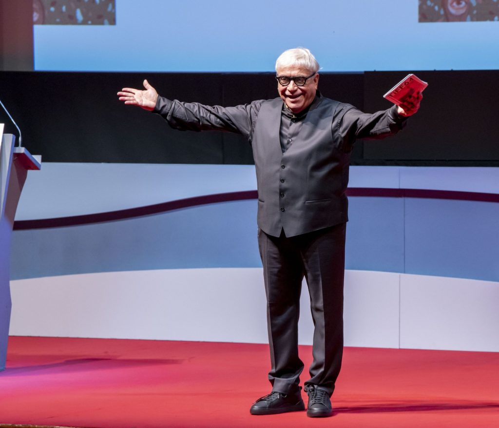 «Αυτή την περίοδο, η Θεσσαλονίκη είναι το σπίτι μου και χαίρομαι πολύ γι’ αυτό. Χαίρομαι ακόμα που βρίσκομαι μπροστά σε 700 σινεφίλ φίλους σε αυτόν τον υπέροχο χώρο, το Ολύμπιον, το οποίο ξεκίνησε να λειτουργεί το 1950, έναν χρόνο πριν γεννηθώ», είπε χιουμοριστικά ο oικοδεσπότης της βραδιάς Δημήτρης Πιατάς, κηρύσσοντας την έναρξη της φετινής διοργάνωσης.