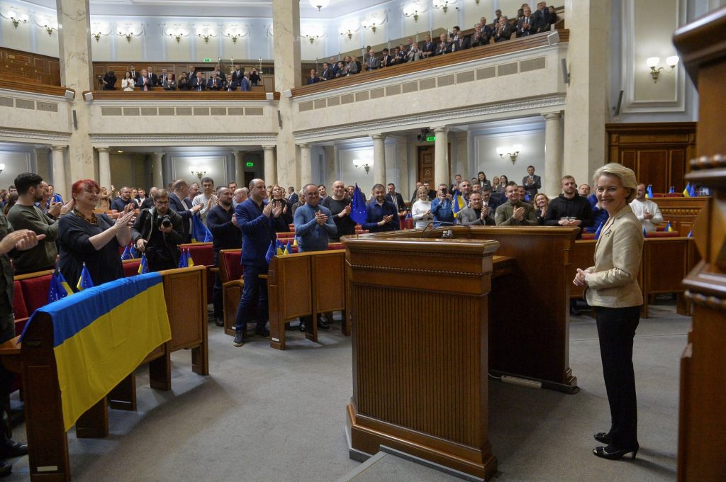 Η πρόεδρος της Κομισιόν επισκέφθηκε το Κίεβο για έκτη φορά διαμηνύοντας ότι η Ουκρανία βρίσκεται λίγο πριν ανοίξει την πόρτα της εισόδου στην ΕΕ, αλλά η κορδέλα στη γραμμή του τερματισμού δεν θα κοπεί ακόμη.