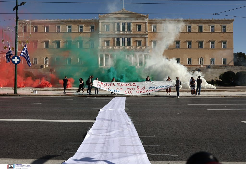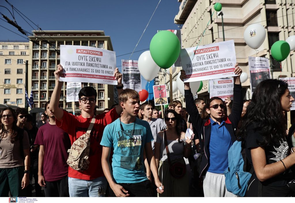 Μαθητές, φοιτητές, εκπαιδευτικοί και γονίες είχαν συγκεντρωθεί νωρίτερα στα Προπύλαια και ολοκλήρωσαν τη διαμαρτυρία τους αφού πραγματοποίησαν πορεία ως την πλατεία Συντάγματος.
