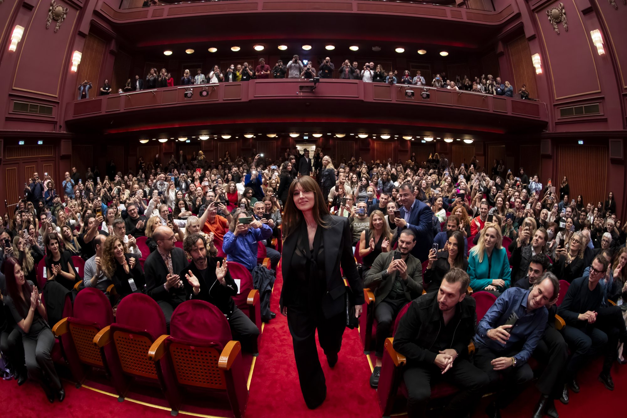 Η εκθαμβωτική Μόνικα Μπελούτσι ανέβηκε στη σκηνή του Ολύμπιον. “Δεν θέλω να πω πολλά για την ταινία, θα την ανακαλύψετε μόνοι σας. Όπως όλοι ξέρετε, η Ελλάδα είναι βαθιά, βαθιά, βαθιά μέσα στην καρδιά μου. Σας ευχαριστώ πολύ”, ήταν τα λίγα λόγια που είπε.