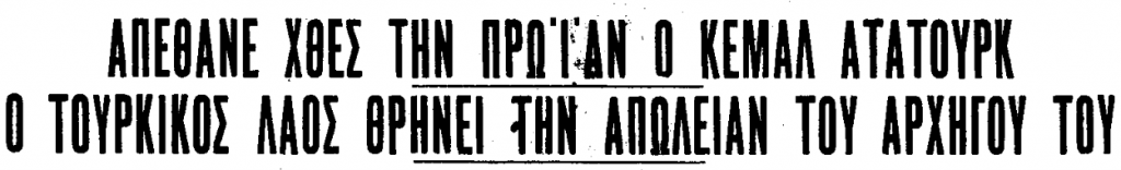 «ΤO BHMA», 11.11.1938, Ιστορικό Αρχείο «ΤΟ ΒΗΜΑ» & «ΤΑ ΝΕΑ»