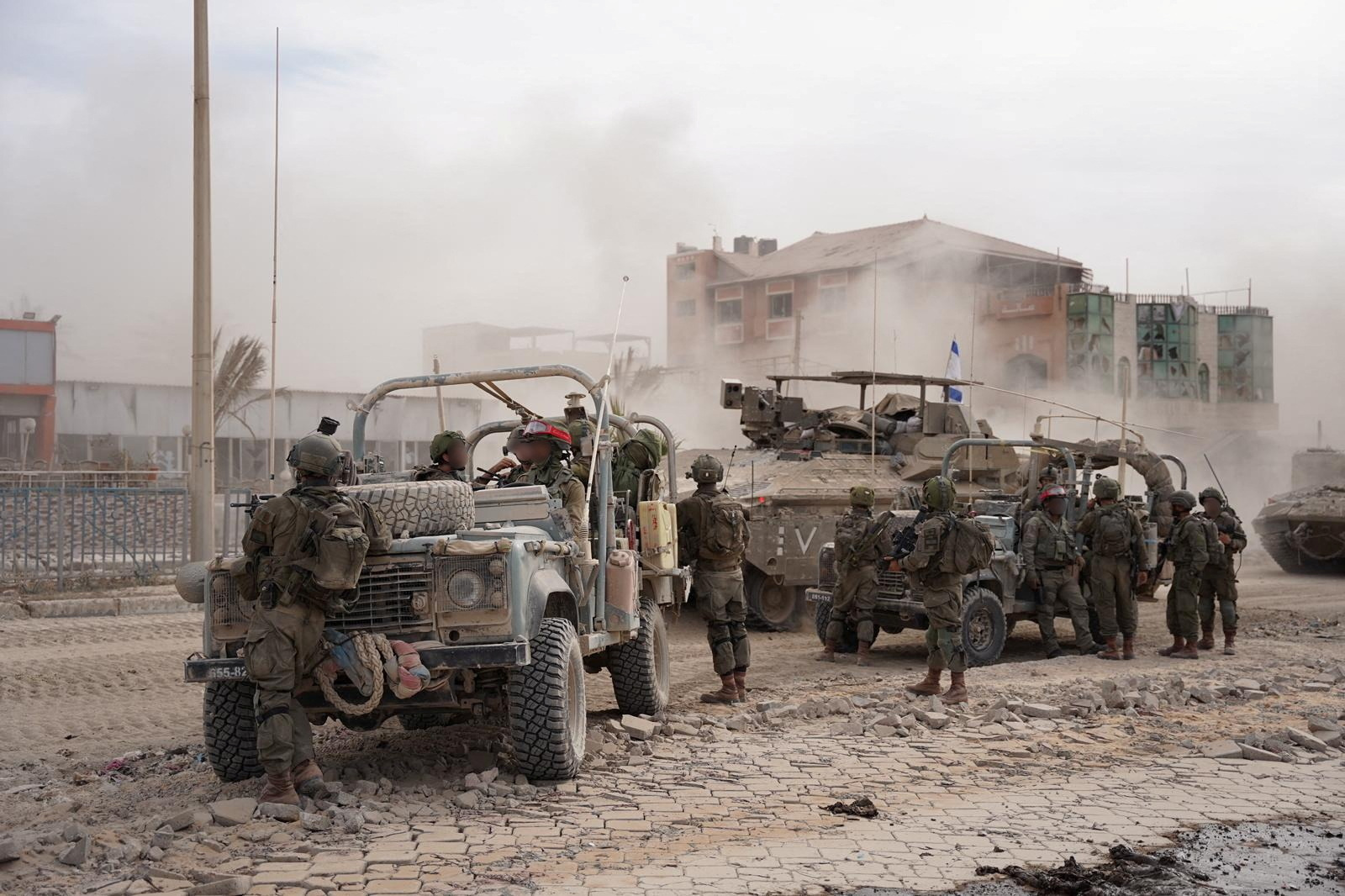 Τη σημαία του Ισραήλ ύψωσαν στο Κοινοβούλιο της Γάζας στρατιώτες των Ισραηλινών Ενόπλων Δυνάμεων ενώ ο υπουργός Άμυνας της χώρας, Γιόαβ Γκάλαντ, ανέφερε νωρίτερα με εμφατικό τρόπο ότι η Χαμάς έχει χάσει πλέον τον έλεγχο της Λωρίδας.