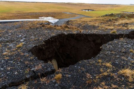 Οι εικόνες σοκάρουν με τους δρόμους να έχουν ανοίξει στα δύο κοντά στο Γκρίνταβικ. Οι ειδικοί δήλωσαν ότι ένας ποταμός μάγματος, μήκους εννέα μιλίων, που τρέχει κάτω από τη χερσόνησο είναι ενεργός, θέτοντας σε κίνδυνο το Γκρίνταβικ.