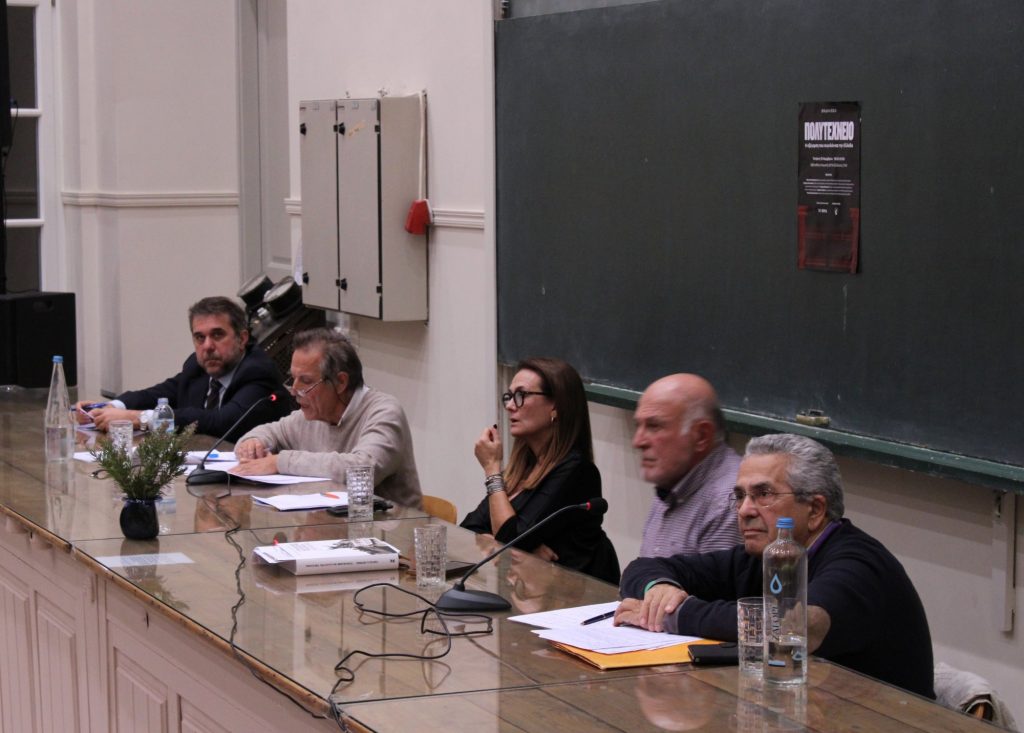 Ακαδημαϊκοί της σχολής, συγγραφείς και μέλη του αντιδικτατορικού αγώνα κατέθεσαν τις απόψεις και τις εμπειρίες τους στην τρίωρη συζήτηση που διοργάνωσε ο Ρητορικός Όμιλος της Νομικής Αθηνών για την επέτειο των 50 χρόνων από την εξέγερση του Πολυτεχνείου, χορηγός της οποίας ήταν η εφημερίδα «Το Βήμα». Την συζήτηση συντόνισε η δημοσιογράφος και head of podcasts του ομίλου alter ego media, Κατερίνα Μπακογιάννη.