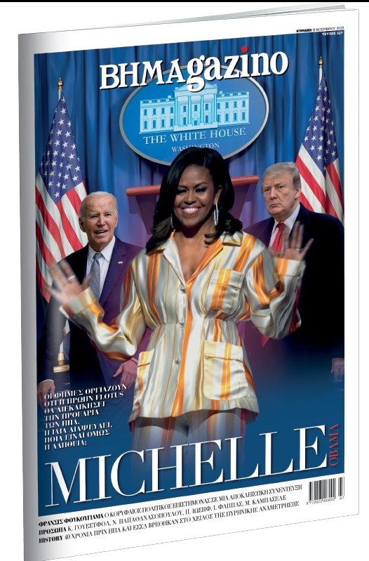 Το “BHMAGAZINO” που κυκλοφορεί όπως πάντα με «ΤΟ ΒΗΜΑ ΤΗΣ ΚΥΡΙΑΚΗΣ», φιλοξενεί στο εξώφυλλό του τη Μισέλ Ομπάμα, σε ένα εντυπωσιακό γράφημα.