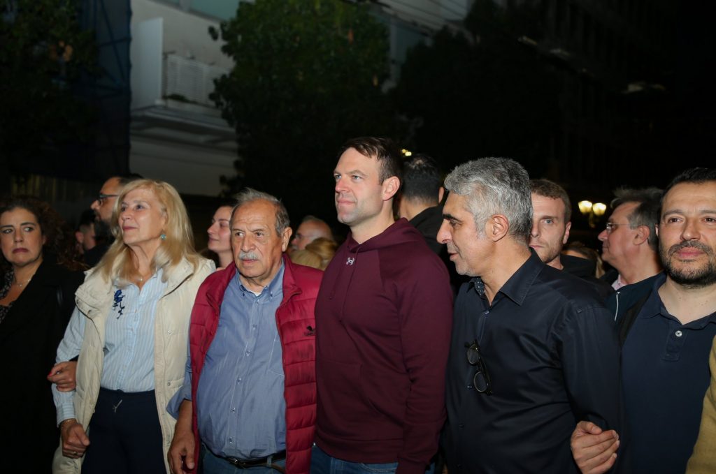 Ο κ. Κασσελάκης παρέστη στο μπλοκ της Νεολαίας ΣΥΡΙΖΑ μαζί με τον αναπληρωτή γραμματέα Γιώργο Βασιλειάδη και άλλα στελέχη του κόμματος. Μεταξύ αυτών ο Γιώργος Τσίπρας, η Ρένα Δούρου, ο Νίκος και ο Πέτρος Παππάς – άπαντες από την «προεδρική ομάδα».