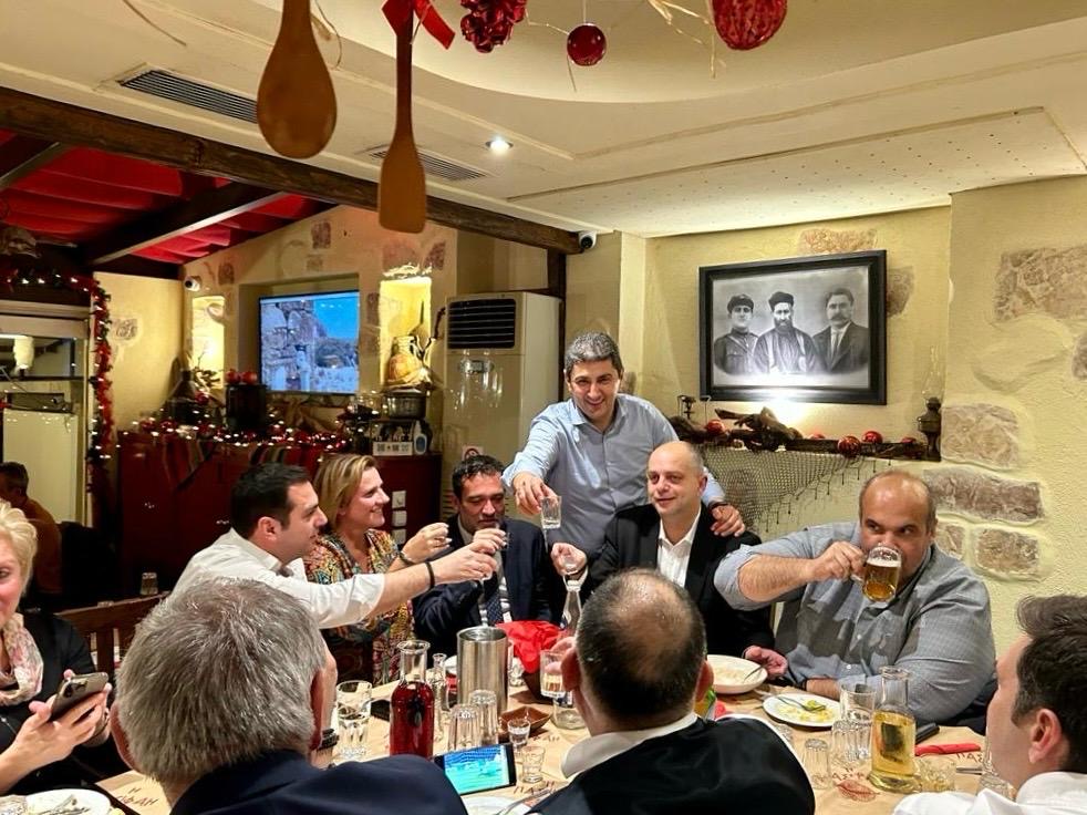 Γνωρίστηκαν στην κρητική ταβέρνα με συνοδεία άφθονης ρακής και κρητικών χορών. Δεύτερον είχε προηγηθεί μια εξαντλητική τρίωρη συνεδρίαση στα κεντρικά γραφεία της ΝΔ, όπου ο υπουργός είχε ενημερώσει βουλευτές και στελέχη του κόμματος από όλη την Ελλάδα (συμμετείχαν τουλάχιστον 150 στελέχη με zoom), για τις δράσεις και νομοθετικές πρωτοβουλίες του υπουργείου. Συνεπώς η πρώτη γνωριμία των βουλευτών έγινε εκεί και συνεχίστηκε στην κρητική ταβέρνα με το συγκρότημα «Απτεραίοι».