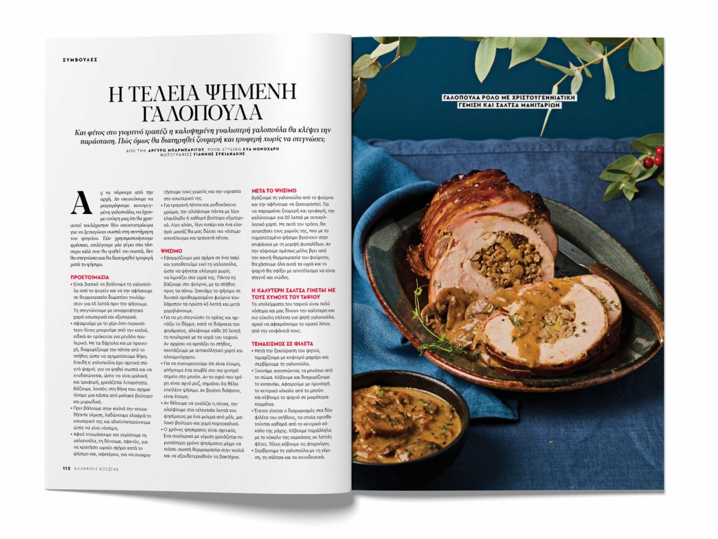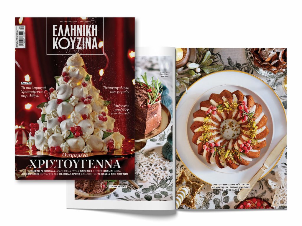 Μέσα από τις 65 μοναδικές γιορτινές συνταγές, αλλά και τις ιδέες για διακόσμηση, γιορτινές εξόδους και γευστικές εξορμήσεις, η Ελληνική Κουζίνα, το νέο περιοδικό της More Media που τιμά τις γαστρονομικές παραδόσεις του τόπου μας, μας βάζει στο κλίμα των χριστουγεννιάτικων διακοπών και μας φτιάχνει τη διάθεση.