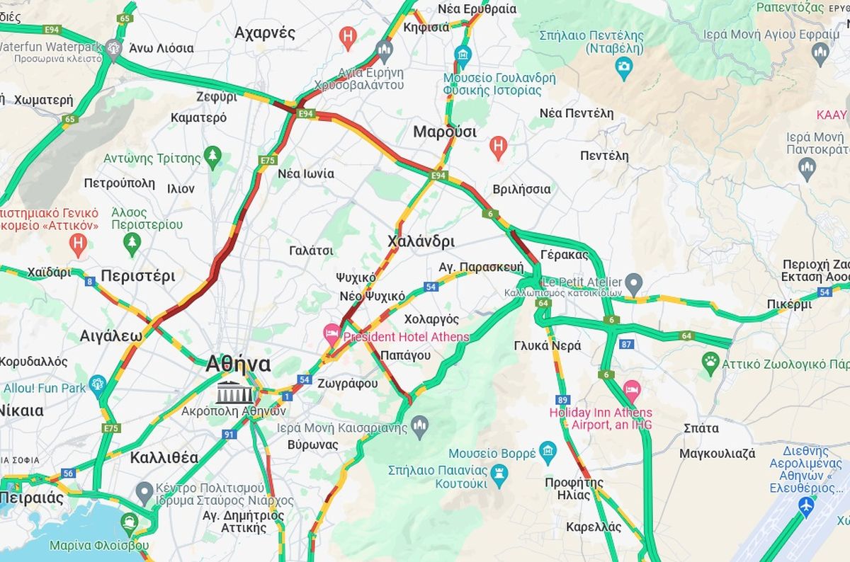 Άλλη μια μέρα με προβλήματα στους δρόμους της Αθήνας. Η κίνηση, σύμφωνα με την τελευταία ενημέρωση της Τροχαίας, είναι αυξημένη στην έξοδο της Αθηνών-Κορίνθου, στα δύο ρεύματα του Κηφισού, σε Αλεξάνδρας, Μεσογείων και στην Κατεχάκη (στο ρεύμα προς Ηλιούπολη) και στην άνοδο της Κηφισίας. Καθυστερήσεις παρατηρούνται στη Βασιλέως Κωνσταντίνου και στο λιμάνι του Πειραιά.
