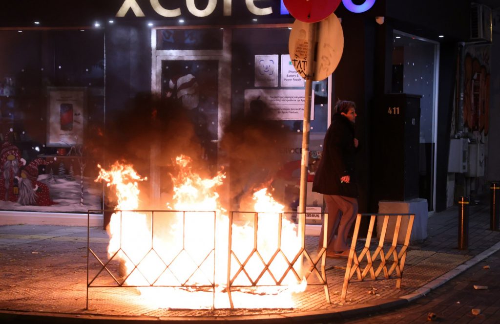 Επίσης, άτομα έχουν βάλει φωτιές σε κάδους στην οδό Ολύμπου. Η αστυνομία προχωρά σε προσαγωγές.