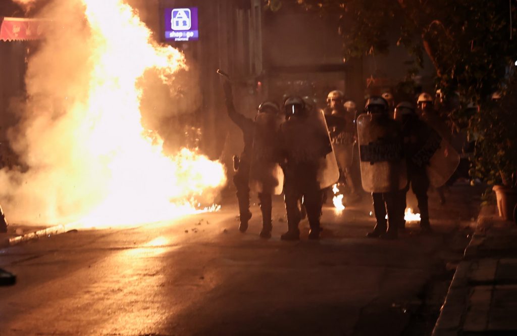 Στην Αθήνα αντιεξουσιαστές έβαλαν φωτιά σε κάδους στην οδό Μπενάκη και έσπασαν βιτρίνες μαγαζιών. Διαδηλωτές πέταξαν πέτρες και μολότοφ, την ώρα που οι αστυνομικοί κάνουν χρήση δακρυγόνων και κρότου λάμψης.