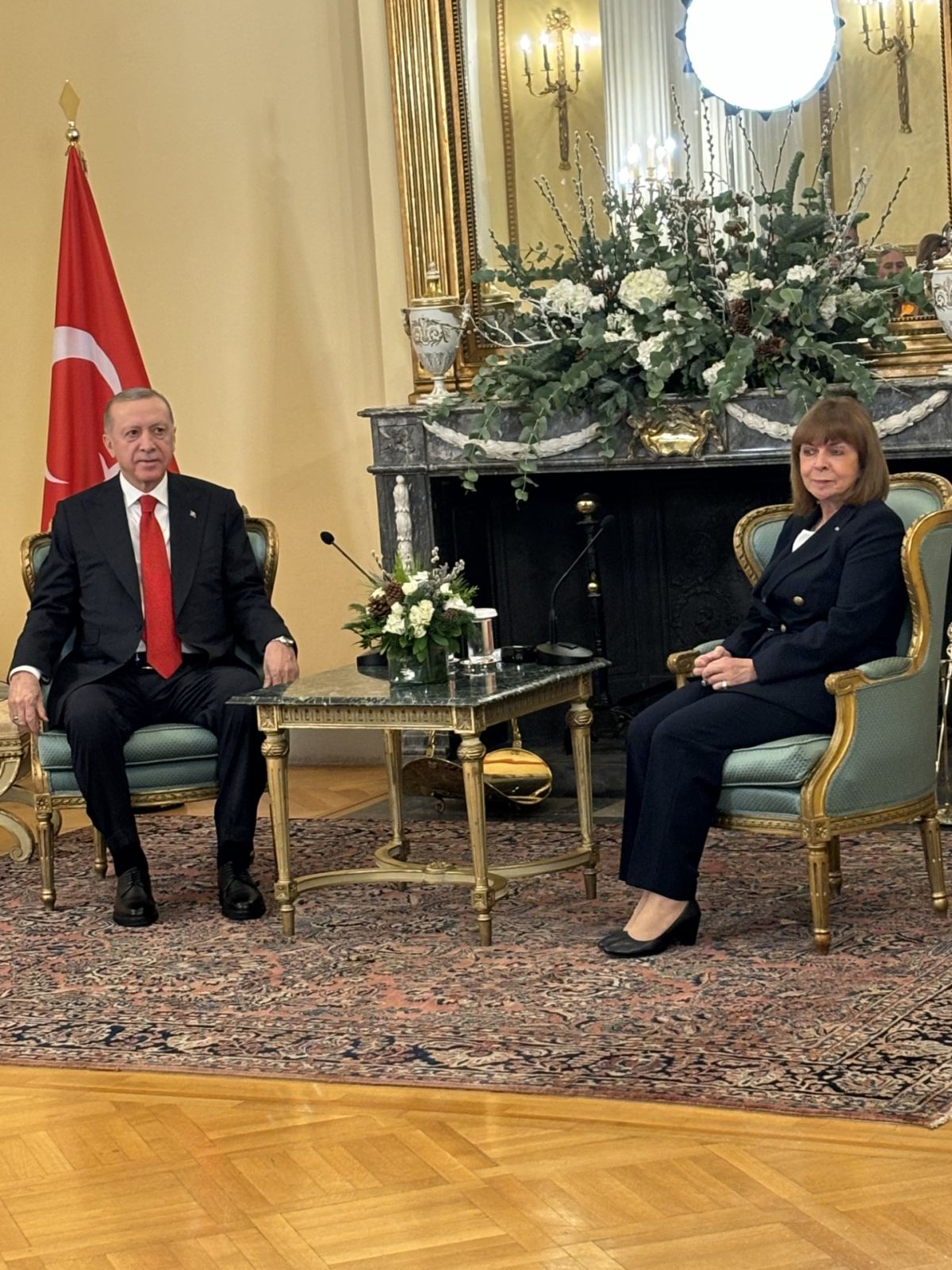 Μπορεί η εξάωρη επίσκεψη στην Αθήνα του Τούρκου Προέδρου να ήταν επίσκεψη εργασίας ωστόσο δώρα ανταλλάγησαν. Ο Τούρκος Πρόεδρος δώρισε στην κυρία Σακελλαροπούλου ένα περίτεχνο βάζο, η Πρόεδρος της Δημοκρατίας δώρισε μια μαρμάρινη πιατέλα σε λευκό μάρμαρο Διονύσου με ανάγλυφο κλαδί ροδιάς. Το δώρο του Ερντογάν πήγε κατευθείαν στο δεύτερο όροφο του Προεδρικού Μεγάρου, εκεί όπου βρίσκεται το Μουσείο Δώρων, ενώ το δώρο της Προέδρου της Δημοκρατίας πήγε και αυτό κατευθείαν στο πορτ μπαγκάζ, ενός από τα δύο πανάκριβα, αλεξίσφαιρα και αλεξίβομβα Μερσεντές (που στοιχίζανε εκατομμύρια στους Τούρκους φορολογούμενους) που έφερε μαζί του ο Ερντογάν.