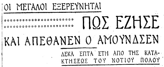 »Κατόπιν αυτού ο Αμούνδσεν εστράφη προς τον ανταρκτικόν, όπου κατηυθύνετο επίσης και ο πλοίαρχος Σκωτ, με την ελπίδα να εμπήξη την σημαίαν της Μεγάλης Βρεττανίας επί του Πόλου.