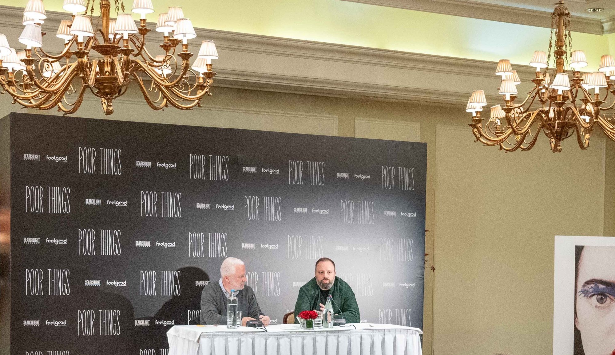 Το πρωί της Κυριακής 17 Δεκεμβρίου στο ξενοδοχείο Μεγάλη Βρετάνια της πλ. Συντάγματος, ο σκηνοθέτης Γιώργος Λάνθιμος παραχώρησε συνέντευξη Τύπου για την τελευταία ταινία του «Poor things» που θα ανοίξει στις αίθουσες την πρωτοχρονιά του 2024. Η ταινία έχει ήδη κάνει καλή πορεία στο εξωτερικό κερδίζοντας το ανώτατο βραβείο του κινηματογραφικού φεστιβάλ Βενετίας και συγκεντρώνοντας επτά υποψηφιότητες στις Χρυσές Σφαίρες 2024.