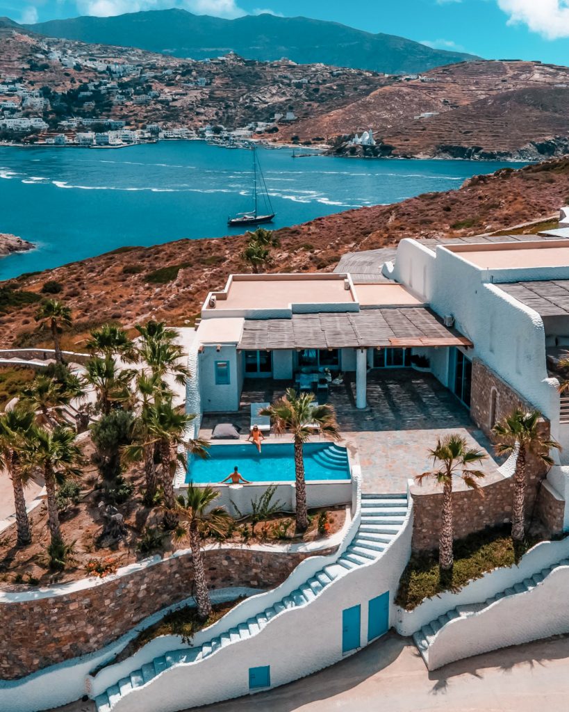 Η παρουσία του Ομίλου στο νησί της Ίου ξεκίνησε το 2003, με την έναρξη της επένδυσης για απόκτηση εκτάσεων γης. Το 2013 άνοιξε το Free Beach Bar στον Μυλοπότα και στη συνέχεια ακολούθησαν οι Agalia Suites στην Τζαμαρία, το Pathos Lounge στην Κουμπάρα, το Steps Bar στην Χώρα, το Taste of Joy Restaurant στην Τζαμαρία , καθώς και το Erego Beach Club & Restaurant στην Κουμπάρα.