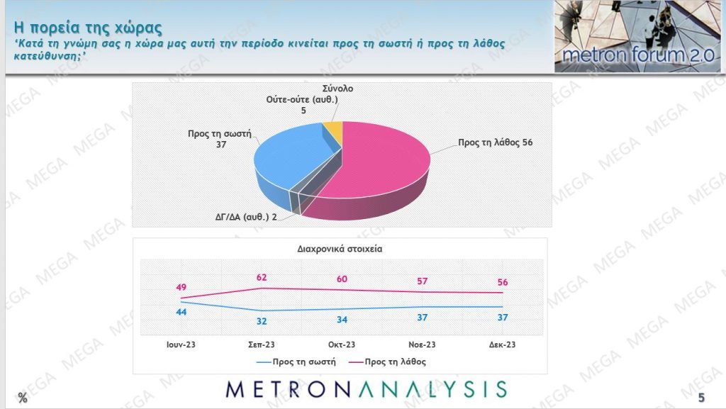 Δυσαρεστημένη παραμένει η ελληνική κοινωνία, όπως αποτυπώνεται σε άλλη μία δημοσκόπηση της Metron Analysis για το MEGA.