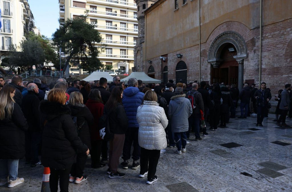 Πλήθος κόσμου δίνει το παρών από το πρωί στον Ιερό Ναό της Του Θεού Σοφίας στη Θεσσαλονίκη όπου έχει τεθεί σε λαϊκό προσκύνημα η σορός του εμβληματικού λαϊκού ερμηνευτή Βασίλη Καρρά.