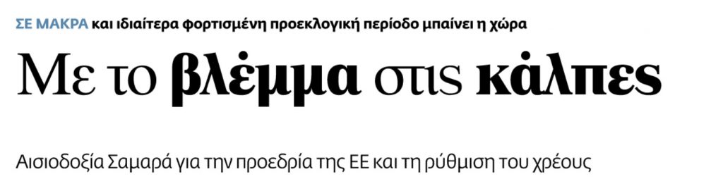 »Η επόμενη περίοδος μόνο ανέφελη δεν θα είναι για τον δικομματικό συνασπισμό, ο οποίος έχει να περάσει μέσα από διακεκαυμένη ζώνη για να φθάσει ως τη διπλή αναμέτρηση (αυτοδιοικητικές εκλογές και ευρωεκλογές) του Μαΐου του 2014, η οποία υπό προϋποθέσεις μπορεί να είναι και τριπλή, αν αποφασιστεί να προκηρυχθούν και πρόωρες βουλευτικές εκλογές».