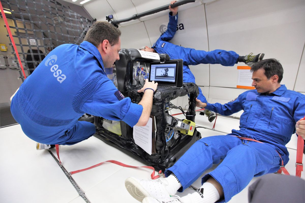 Η πειραματική συσκευή – φριτέζα του ΑΠΘ, μεταφέρθηκε από το εργαστήριο του Αριστοτελείου στον αέρα και στις παραβολικές πτήσεις, όπου οι απαιτήσεις για συντονισμό και οργάνωση ήταν ιδιαίτερα υψηλές. «Όλα έπρεπε να είναι οργανωμένα με ακρίβεια δευτερολέπτου», είπε ο κ. Καραπάντσιος, περιγράφοντας τη διαδικασία των παραβολικών πτήσεων, όπου τα μέλη της επιστημονικής ομάδας έπρεπε να ολοκληρώνουν μέρη του πειράματος μέσα σε 25 δευτερόλεπτα έλλειψης βαρύτητας, όσο δηλαδή διαρκούσε η κάθε μία «παραβολική βουτιά» του αεροσκάφους, η οποία γίνεται όταν το αεροσκάφος σβήνει προσωρινά τους κινητήρες και κυριολεκτικά πέφτει από περίπου τα 10 χιλιόμετρα υψόμετρο στα 8 χιλιόμετρα.