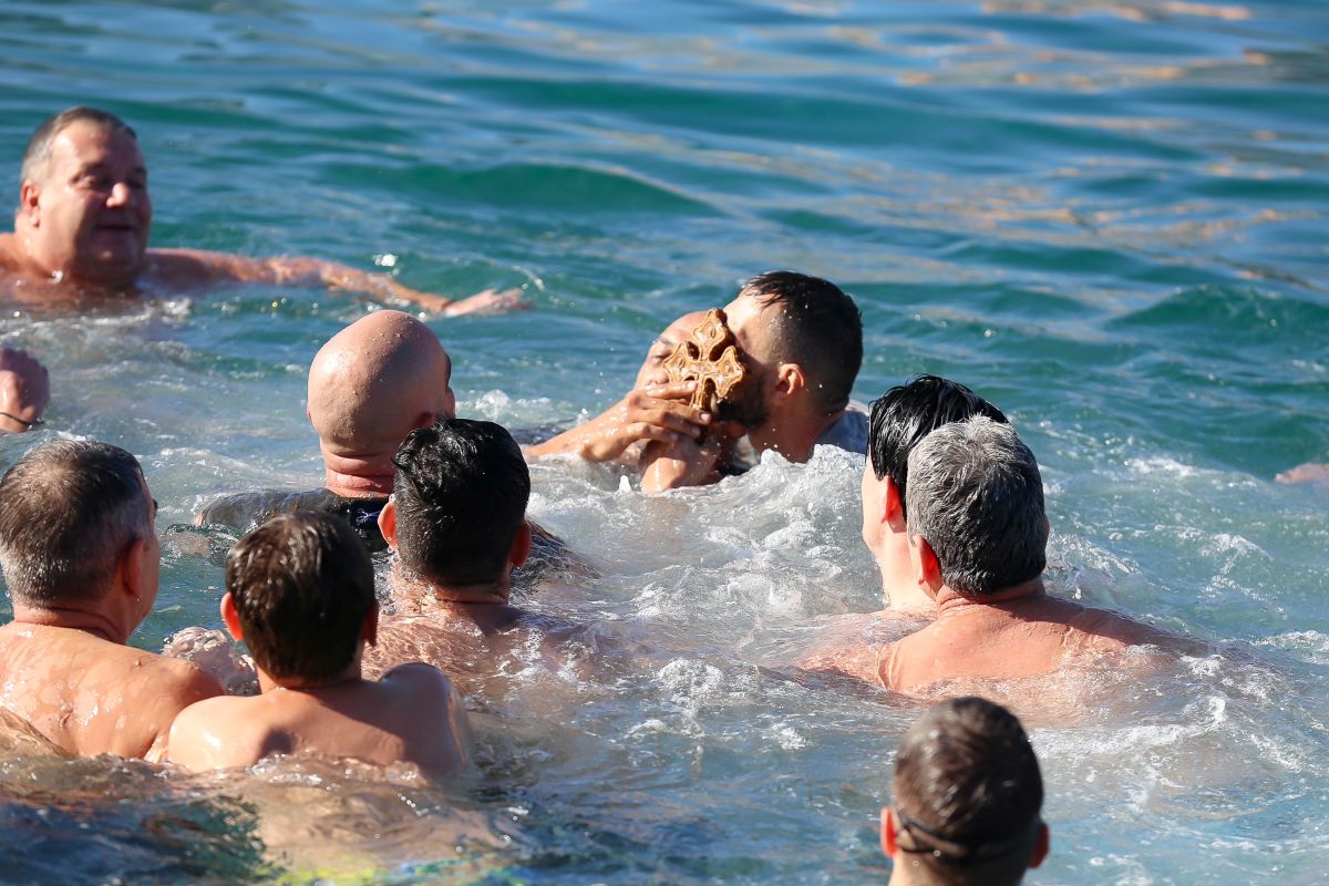 Ο καλός καιρός βοήθησε τους τολμηρούς που αποφάσισαν να τηρήσουν το έθιμο των Θεοφανείων και να βουτήξουν στα κρύα νερά του λιμανιού για να πιάσουν τον σταυρό. Ο πρωθυπουργός έδωσε σταυρουδάκι στους κολυμβητές που έπιασαν τον σταυρό.