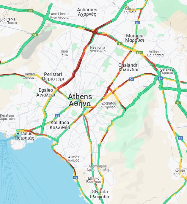 Σύμφωνα με την ανάλυση της Τροχαίας αυξημένη κίνηση παρατηρείται στους εξής δρόμους: