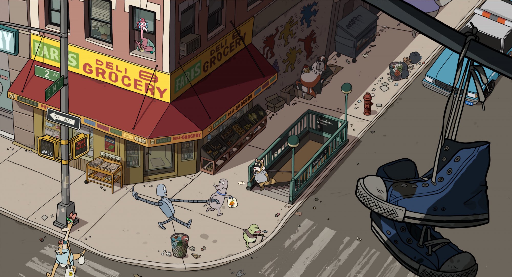 Έτσι, ενώ στο βιβλίο η ιστορία διαδραματίζεται σε μια ανώνυμη και άχρονη αμερικανική πόλη, ο κ. Berger αποφάσισε να την τοποθετήσει στο Μεγάλο Μήλο των 80s. Ακόμα περισσότερο, έκανε την Νέα Υόρκη, την πόλη στην οποία ο ίδιος έζησε μια ολόκληρη δεκαετία, πρωταγωνίστρια της ιστορίας. «Θέλησα να ταξιδέψω το κοινό πίσω στην Νέα Υόρκη των 80s. Ήθελα κάθε εικόνα να σφύζει από λεπτομέρειες. Δημιουργήσαμε νέες σκηνές, νέους χαρακτήρες. Στο βιβλίο τα σχέδια είναι πολύ λιτά, μόνο λίγες πινελιές, καμία λεπτομέρεια, κανένα τοπίο, σχεδόν κανένας χαρακτήρας, εκτός από τον σκύλο και το ρομπότ. Ήθελα πραγματικά οι Νεοϋορκέζοι να αναγνωρίσουν την πόλη όταν θα έβλεπαν την ταινία. Αγαπώ τη Νέα Υόρκη και αυτή η ταινία είναι μια ερωτική επιστολή με παραλήπτη την ίδια την πόλη».