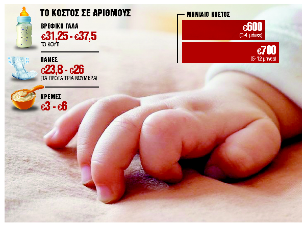 Σύμφωνα με τον Απόστολο Ραυτόπουλο το μηνιαίο κόστος μόνο για τα βρεφικά γάλατα μπορεί να φτάσει ακόμα και τα 300 ευρώ: «Ενα παιδί από 0 έως 6 μηνών χρειάζεται κατά μέσο όρο 2 κουτιά βρεφικό γάλα την εβδομάδα, πράγμα που σημαίνει 8 κουτιά τον μήνα. Το κόστος αυτό υπολογίζεται μεσοσταθμικά στα 250 με 300 ευρώ μηνιαίως σε φυσιολογικές συνθήκες, δηλαδή αν το παιδί δεν θέλει παραπάνω γεύματα ή κάποιο ειδικό γάλα (για παράδειγμα γάλα χωρίς λακτόζη για την αποφυγή κολικών). Υπάρχει, εξάλλου, βρεφικό γάλα το οποίο μπορεί να φτάσει ακόμα και τα 150 ευρώ».