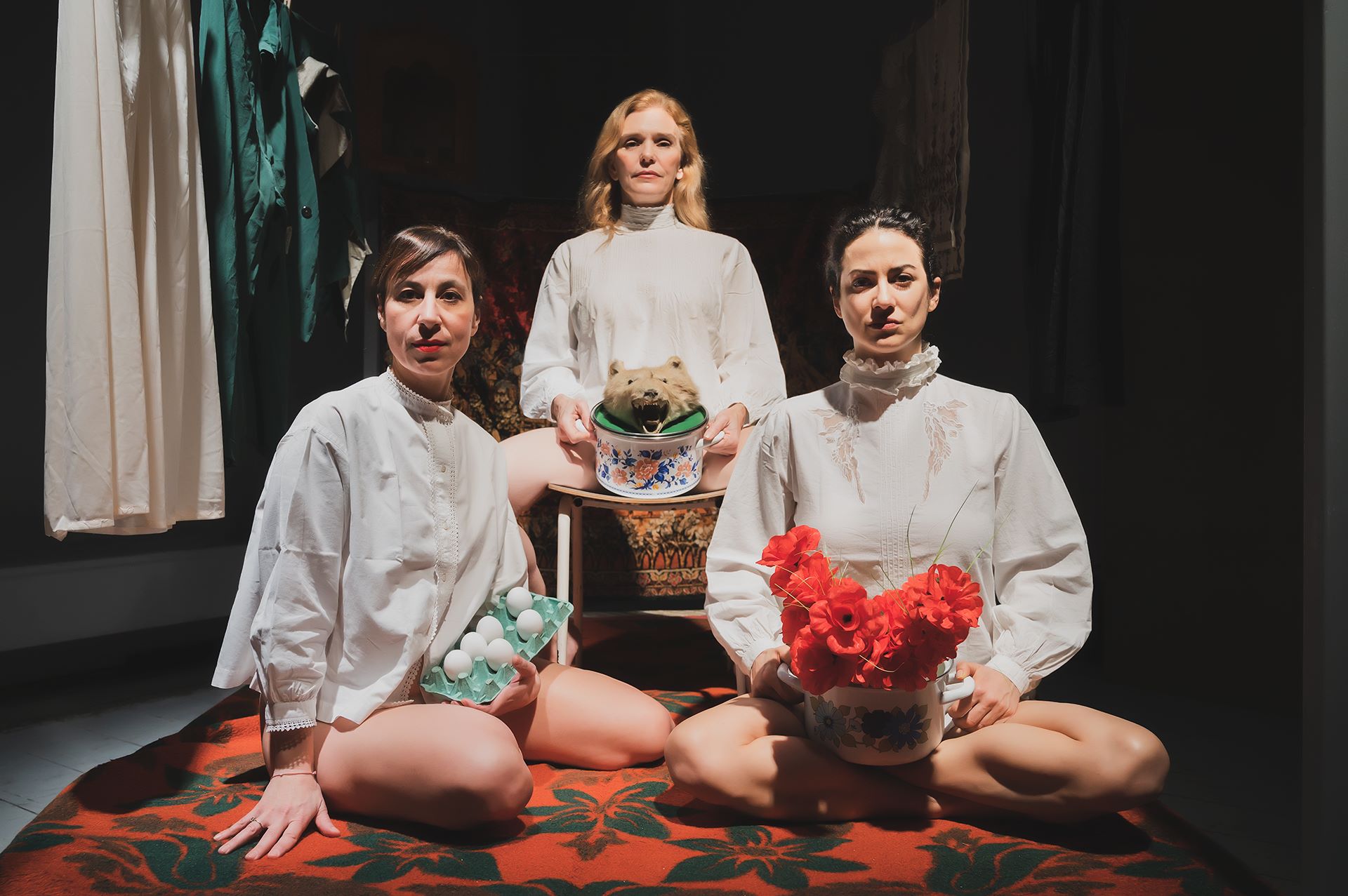 Οι Μαρία Μαγκανάρη, Μαρία Σκουλά και Aμαλία Καβάλη στην παράσταση «Ο άντρας μου» © Μαρία Τούλτσα