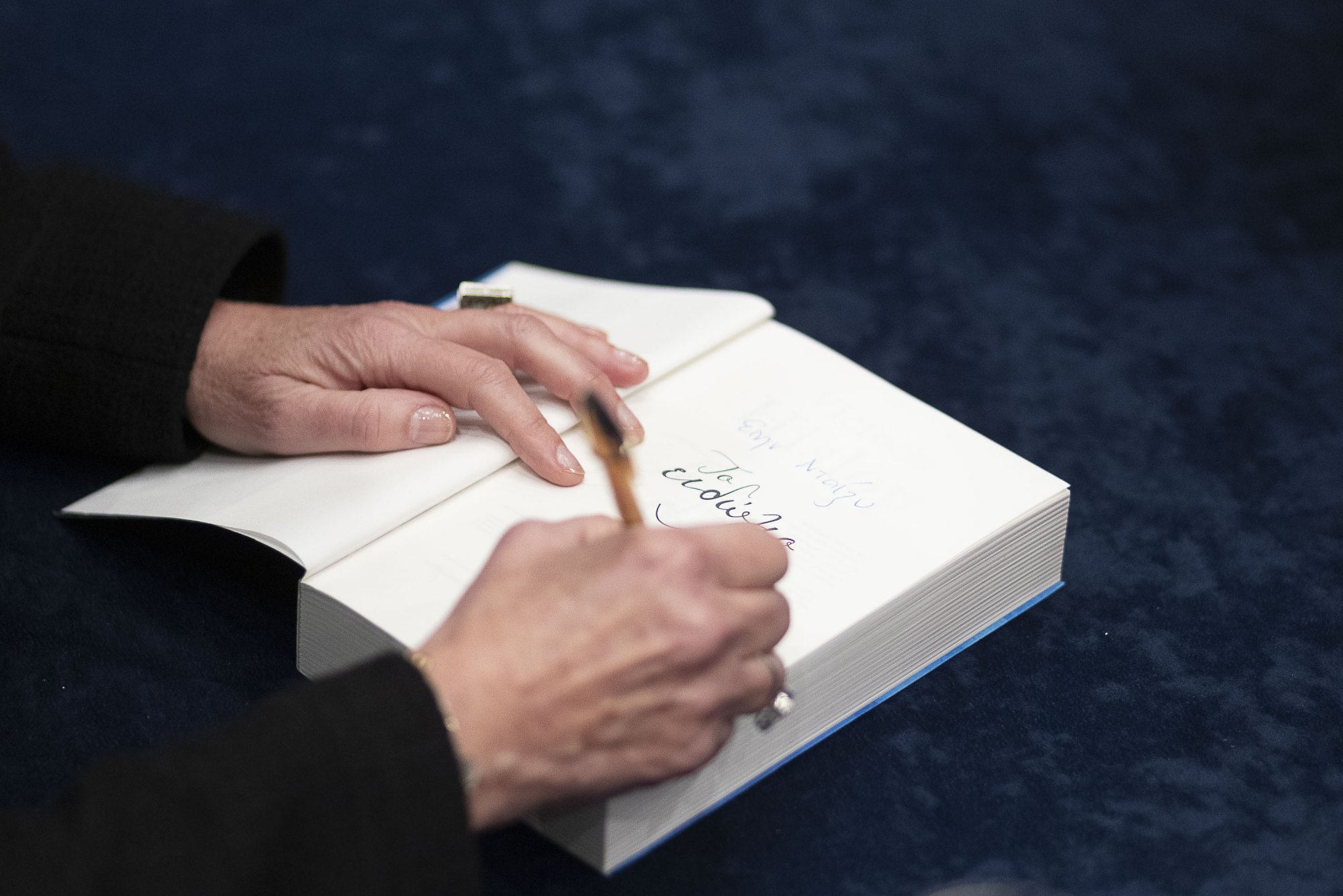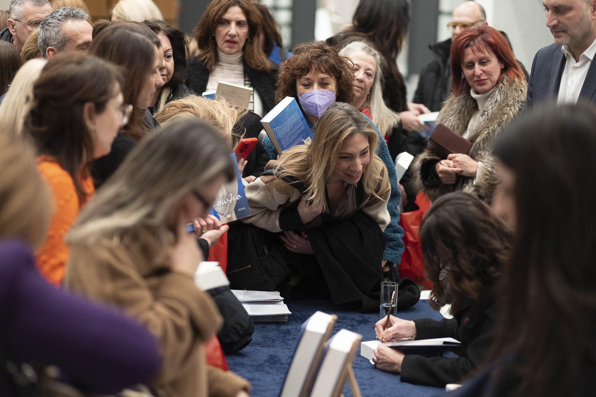 Η Βικτόρια Χίσλοπ μετά το τέλος της εκδήλωσης, που πραγματοποιήθηκε εξ αναβολής χθες, καθώς η αρχική ημερομηνία αναβλήθηκε λόγω ασθένειας της ίδιας, υπέγραψε βιβλία και συνομίλησε με το κοινό.