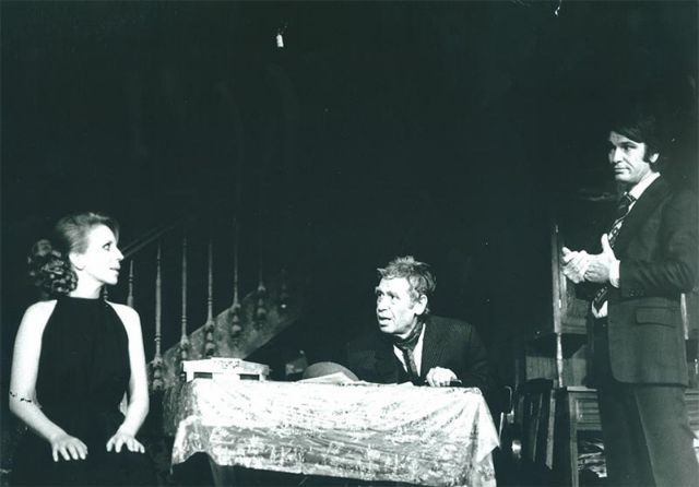 Νόνικα Γαληνέα, Βασίλης Διαμαντόπουλος, Νίκος Κούρκουλος. Η επιστροφή. Σκηνοθεσία: Μίνως Βολανάκης. Θέατρο Κάππα, 1977.