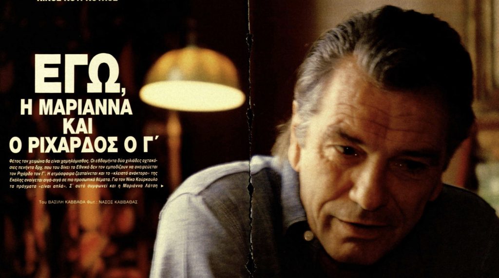Στη συνέντευξη αυτή, ο Νίκος Κούρκουλος μίλησε για τη σχέση του με τον κινηματογράφο και το θέατρο αλλά και για τη σχέση του με τη σύντροφό του Μαριάννα Λάτση, κόρη του εφοπλιστή Γιάννη Λάτση, θέμα που την εποχή εκείνη βρισκόταν πάντα στην επικαιρότητα.