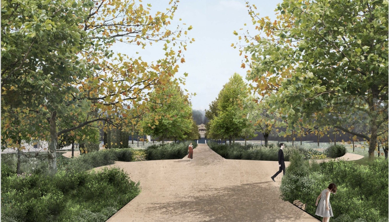 Αλέα με πλατάνια. Φωτορεαλιστική απεικόνιση.