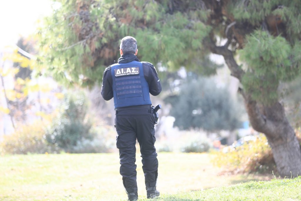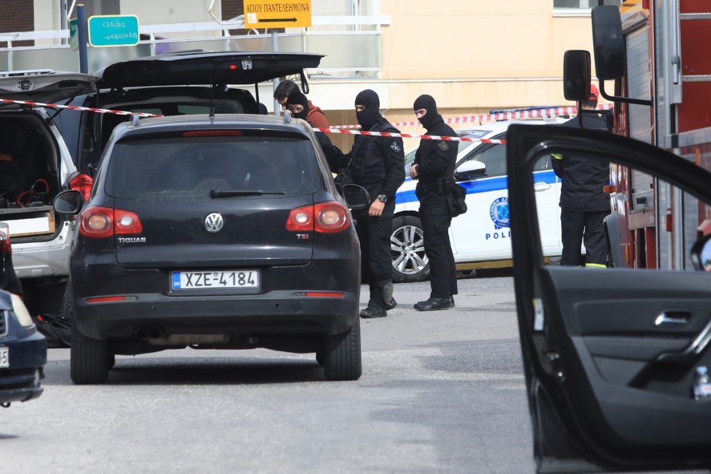 Οι αστυνομικοί ερευνούσαν την περιοχή γύρω από τα γραφεία (ΓΙΑΝΝΗΣ ΠΑΝΑΓΟΠΟΥΛΟΣ/EUROKINISSI)