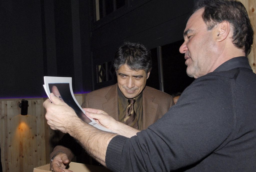 O Oliver Stone παρατηρεί τις φωτογραφίες του Βαγγέλη Ρασσιά