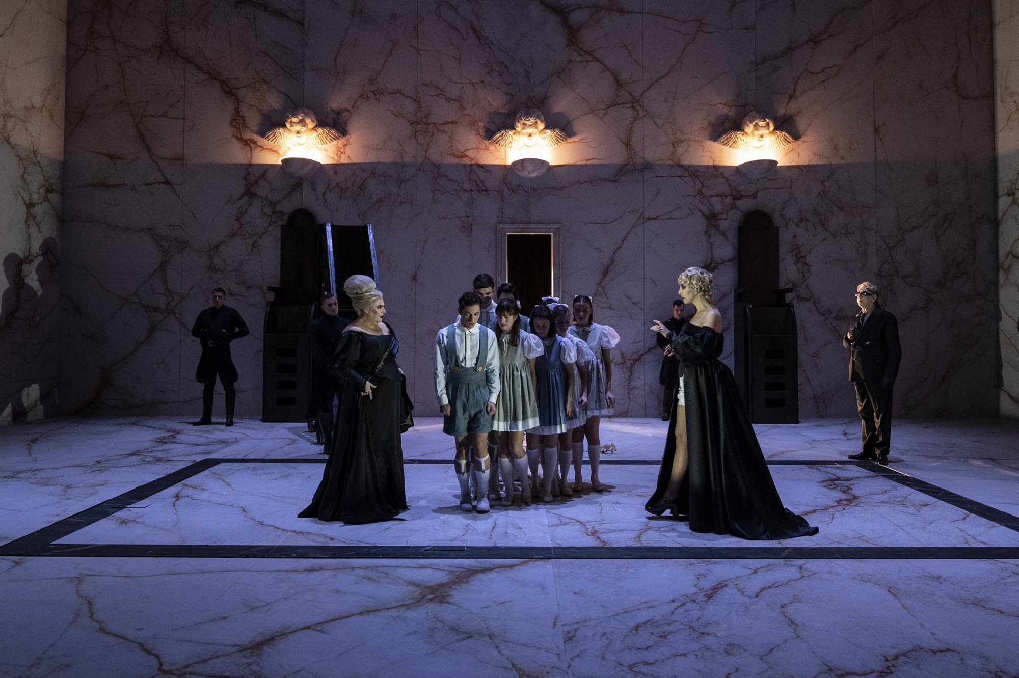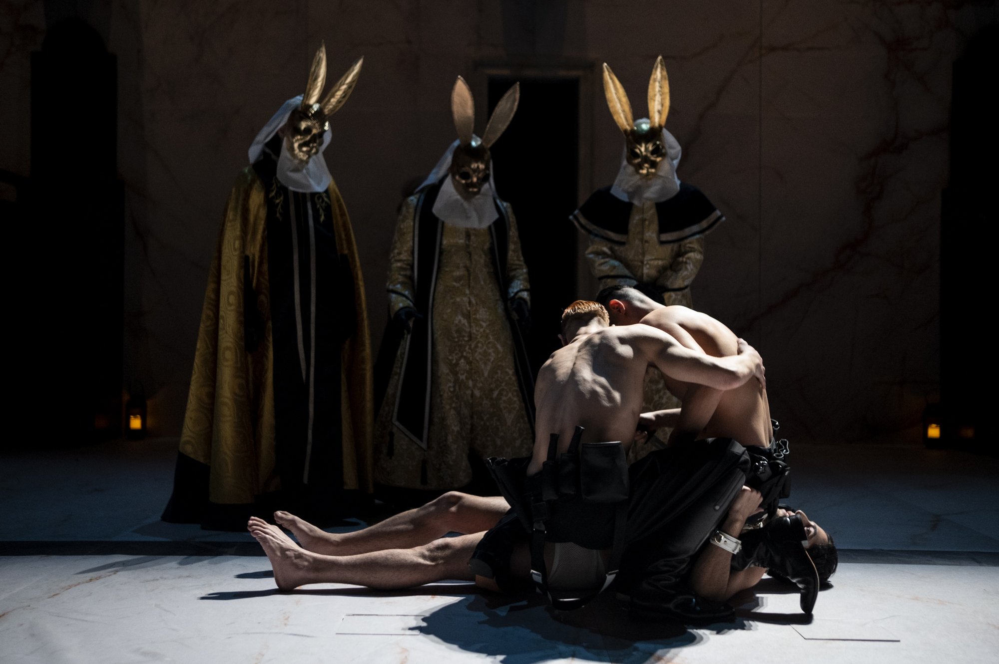 Εκεί που ο Παζολίνι αφήνει στιγμές «ανάπαυλας» σε όσα αποτροπιαστικά συμβαίνουν στη ροή της κινηματογραφικής του αφήγησης, εδώ σε τούτη τη δραματουργική επεξεργασία για την ελληνική θεατρική σκηνή, με την υπογραφή του Άρη Μπινιάρη και της Έλενας Τριανταφυλλοπούλου, οι ανάσες δεν επιτρέπονται. Θα μπορούσαμε να βρισκόμαστε μέσα στο dark web, παρακολουθώντας κάθε είδος διαστροφής με ακρωτηριασμούς παιδιών, βιασμούς και βασανισμούς ανθρώπων, αντί να παρατηρούμε τα αποκρουστικά τεκταινόμενα επί σκηνής στην αίθουσα της Εναλλακτικής Σκηνής της ΕΛΣ; Θα μπορούσαμε. Ή ίσως να είχαμε ενεργοποιήσει μία live streaming μετάδοση στο κινητό, στο tablet, στην τηλεόραση από τα μέτωπα των πολέμων που μαίνονται στην Ευρώπη και τη Μέση Ανατολή, και να περιεργαζόμαστε τα πολλαπλά πρόσωπα του ανθρώπινου εξευτελισμού εν έτει 2024; Σαφώς, ναι.