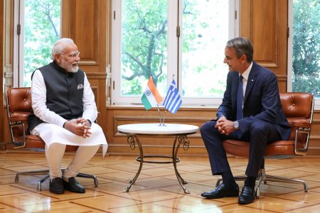 Οι δύο ηγέτες συζήτησαν για τον στόχο διπλασιασμού των διμερών εμπορικών συναλλαγών μέχρι το 2030 και την πιο συστηματοποιημένη επαφή και διασύνδεση ανάμεσα σε ελληνικές και ινδικές επιχειρήσεις.