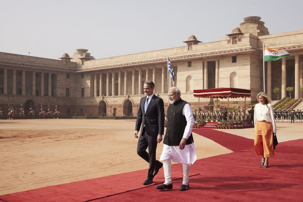 Επίσημη επίσκεψη στην Ινδία πραγματοποιεί ο πρωθυπουργός Κυριάκος Μητσοτάκης. Τον κ.Μητσοτάκη υποδέχτηκε ο Narendra Modi στο Προεδρικό Μέγαρο της Ινδίας, στο Νέο Δελχί.