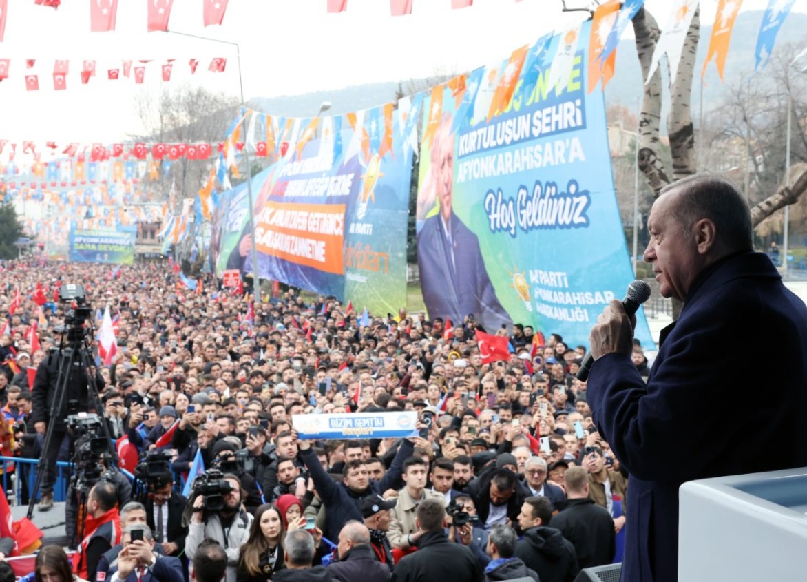 Ο Τούρκος πρόεδρος έστειλε και προεκλογικά μηνύματα με αναφορές στην ιστορία του Μικρασιατικού πολέμου. «Το Αφιόν, που χθες έγραψε έπος με την υπεράσπιση της πατρίδας στον εθνικό αγώνα, σήμερα γράφει ένα νέο έπος προστατεύοντας την εθνική βούληση» είπε, κάνοντας έμμεση αναφορά στις προσεχείς δημοτικές εκλογές. «Τώρα θέλω να φωνάξετε όσο πιο δυνατά μπορείτε από εδώ, ώστε να μη μείνει κανείς που δεν θα σας ακούσει από το Αιγαίο μέχρι τη Μεσόγειο και τη Μαύρη Θάλασσα. Είμαστε έτοιμοι; Είμαστε έτοιμοι πολίτες της Αφιόν για τον Τουρκικό Αιώνα στις 31 Μαρτίου;», ρώτησε ξεσηκώνοντας τα πλήθη.