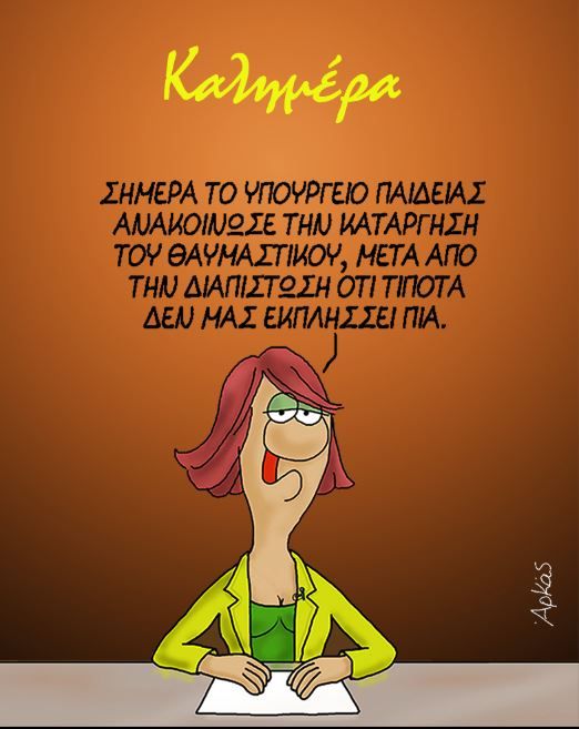 Με το σημερινό του σκίτσο ο γνωστός καλλιτέχνης είναι φανερό ότι αναφέρεται στις μεταρρυθμίσεις που νομοθετικά προωθούνται από την κυβέρνηση και την Ελληνική Βουλή, όπως τα μη κρατικά πανεπιστήμια και ο γάμος των ομόφυλων ζευγαριών.