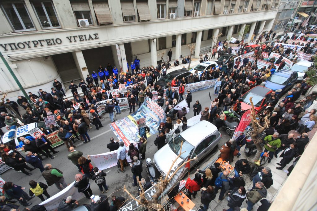Οι υγειονομικοί συγκεντρώθηκαν νωρίτερα στην πλατεία Μαβίλη, στο υπουργείο Υγεάις ενώ η πορεία κατευθύνεται προς το Μέγαρο Μαξίμου.